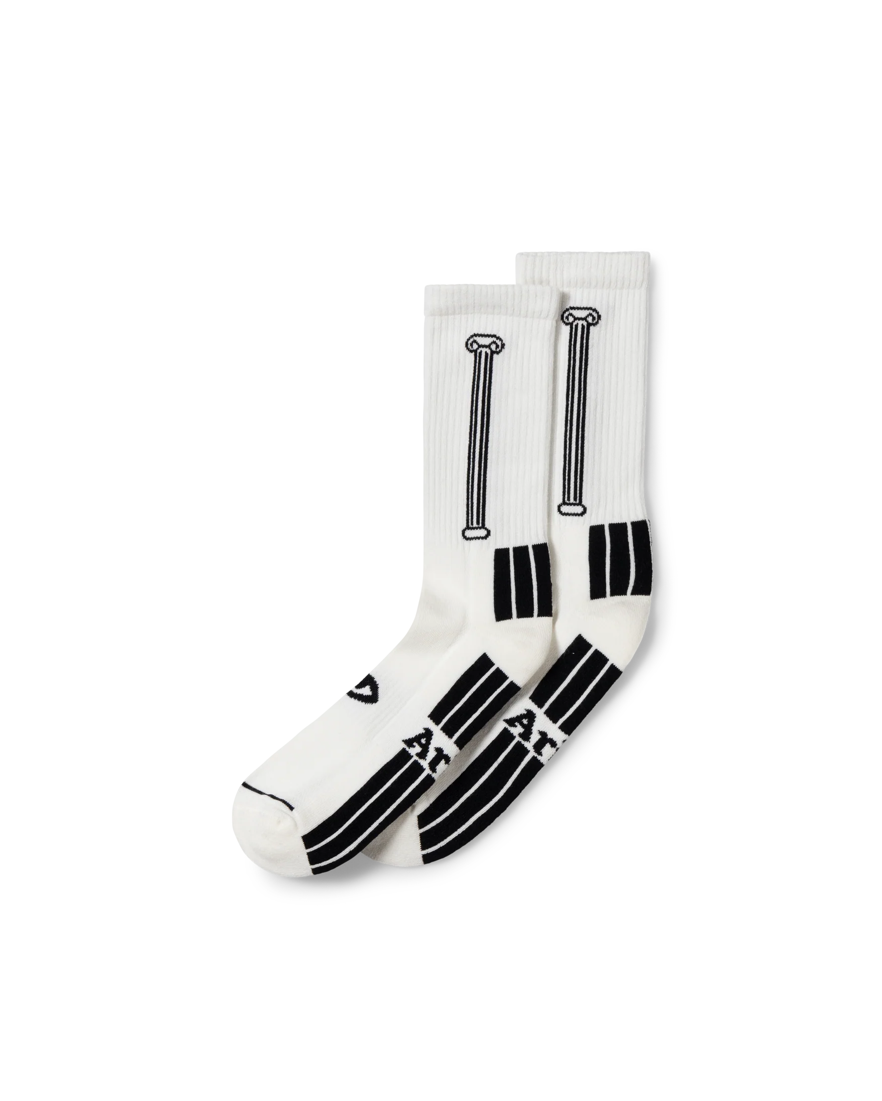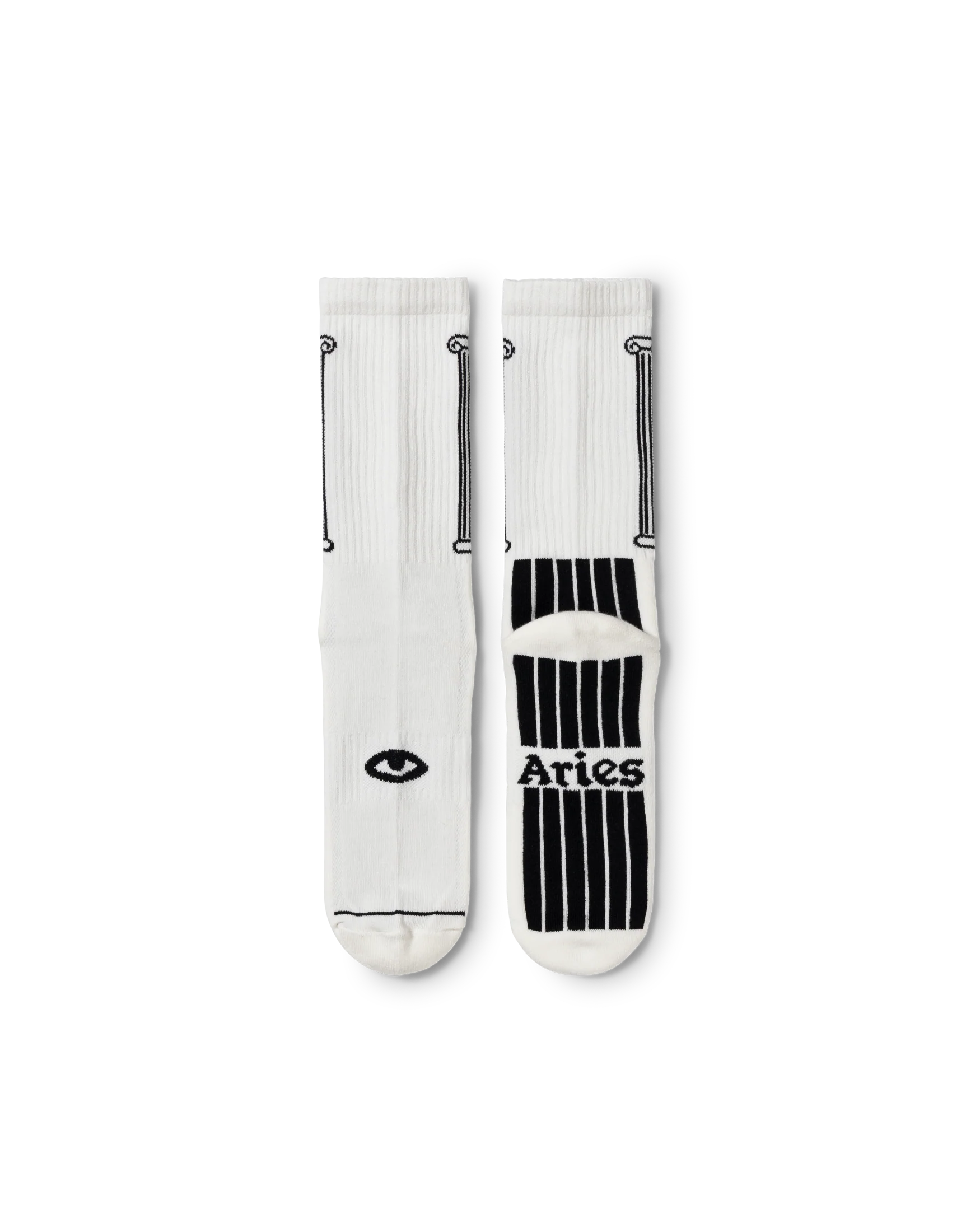 Jacquard socks in a sports-blend mix yarn, with Aries 'column' and graphics. Padded sole for extra comfort. Made in Italy.