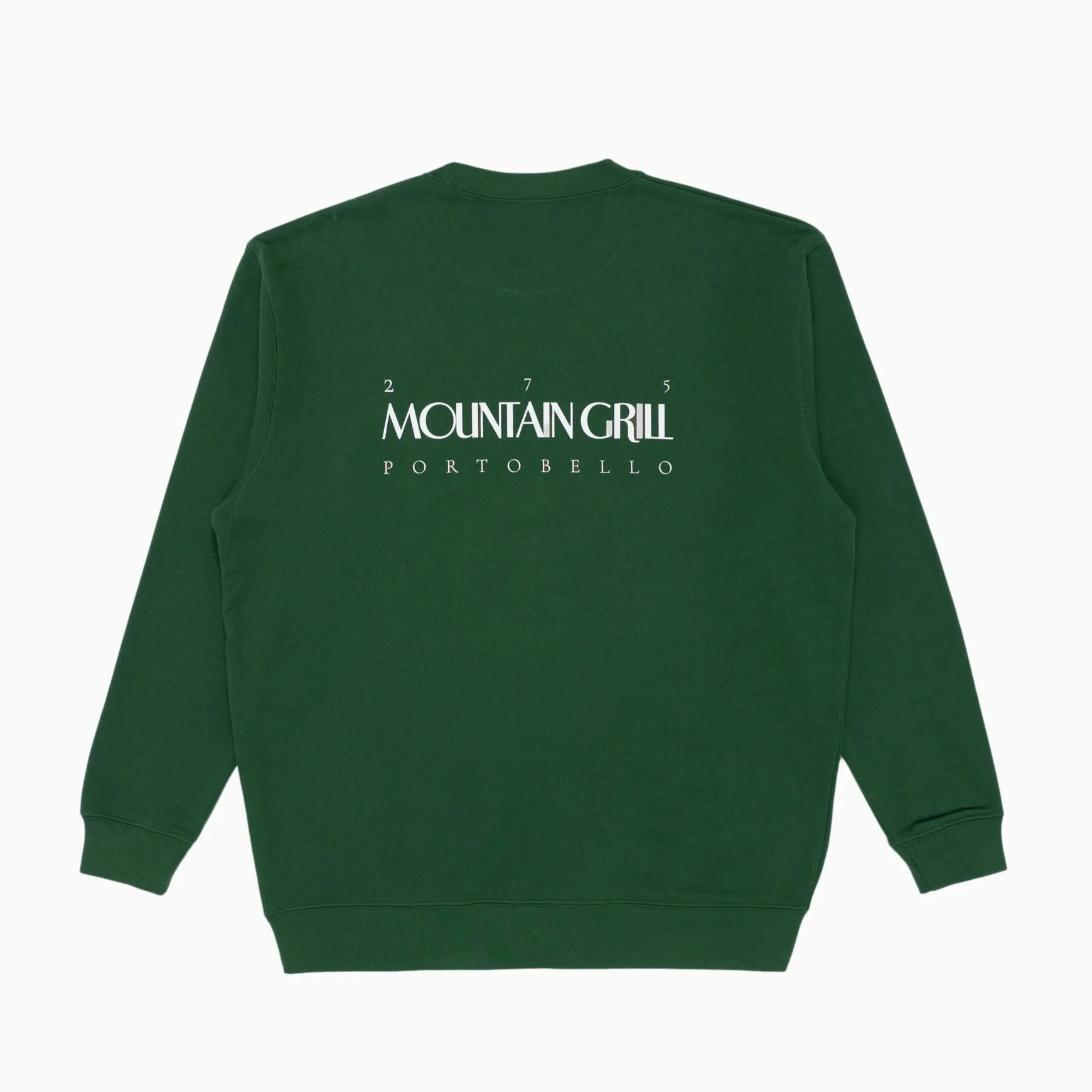 Inspired by the Mountain Grill café that once inhabited Portobello Road, this bottle-green sweatshirt from Garbstore’s AW23 collection is cut from loopback-cotton jersey to a relaxed silhouette with printed graphics at the chest and across the back.
