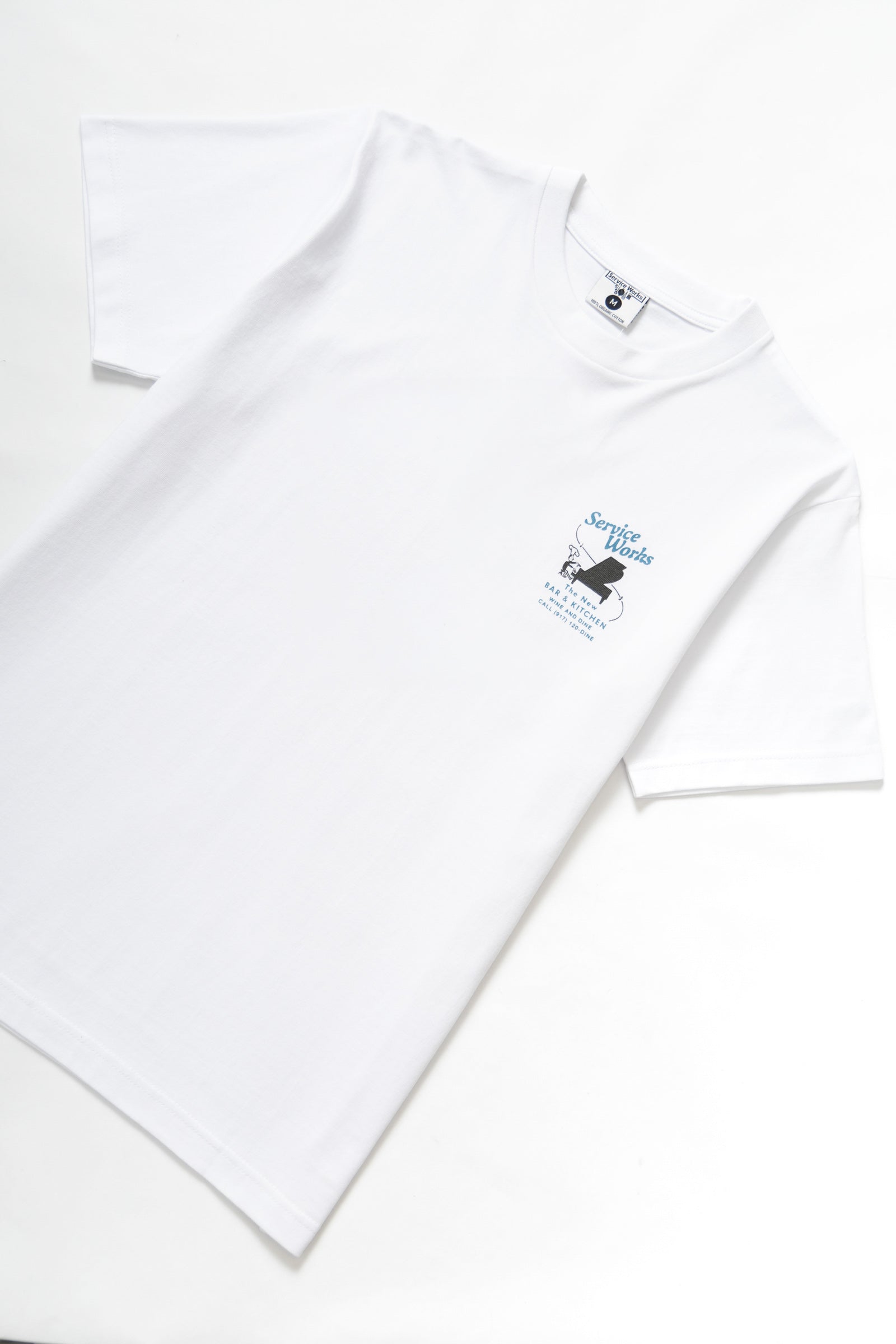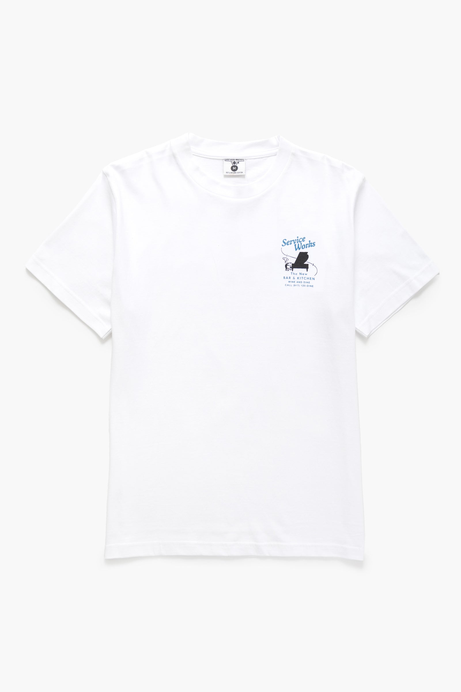 The Bar & Kitchen Tee by Service Works is constructed with 250GSM GOTS Organic cotton featuring screen printed graphics and top stitched neckline.
