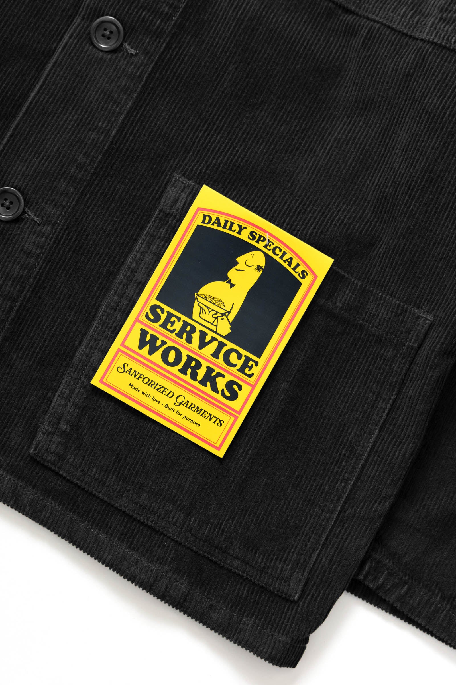 The Corduroy Chore Shirt (previously named Coverall) by Service Works features a regular fit constructed with 11oz Organic Cord Cotton. Including a 3 pocket construction, 5 button closure and finished with a woven front pocket label.