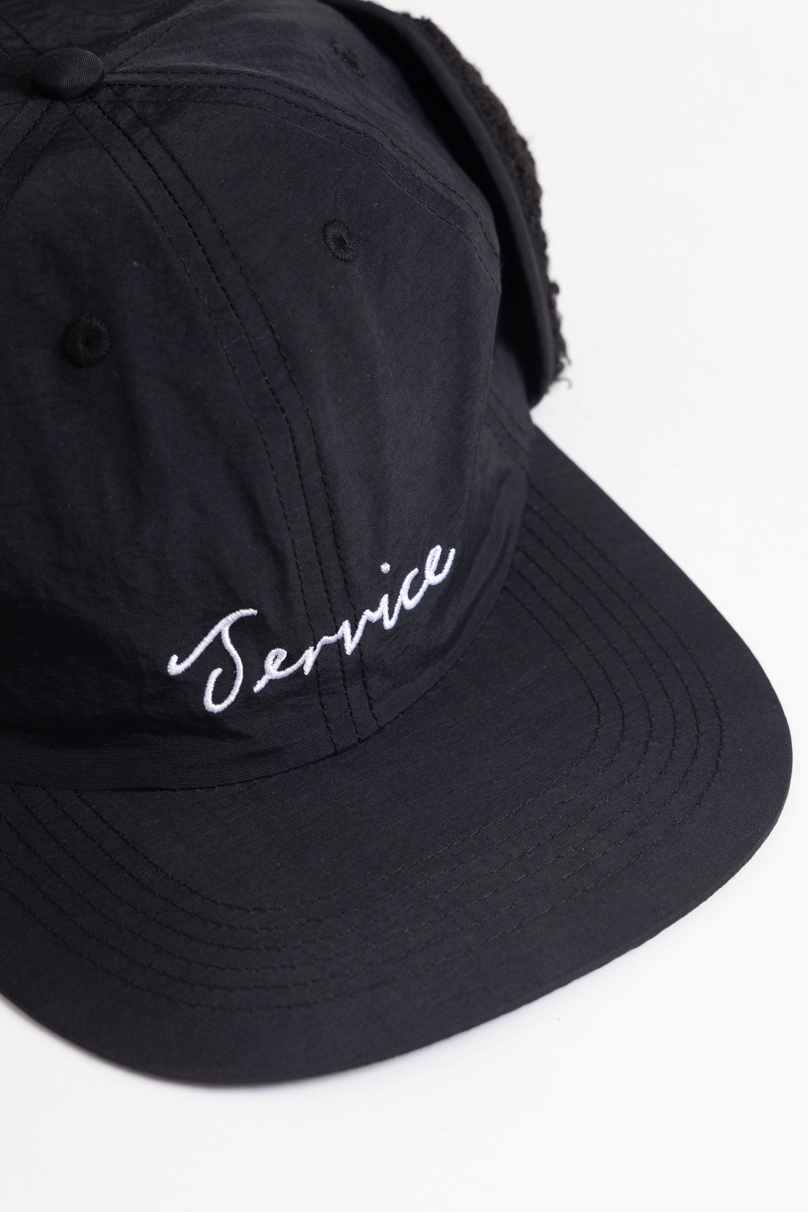 The Script Trapper Hat by Service Works is a low profile 6-panel cap constructed from 100% nylon. Features include an elastic adjuster, cosy fleece lined earflaps with popper closure and a front embroidered graphic.